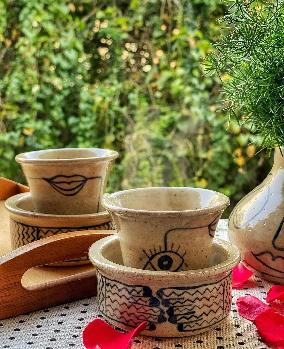 Every piece is wheel thrown and hand painted. Slight variations in colors, textures and patterns are inevitable and must not be considered a flaw.